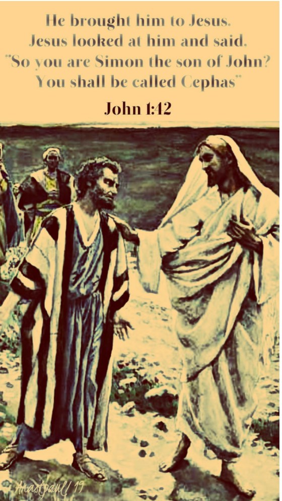 Then Jesus calls him “Simon the son of John” and gives him the name Cephas/Peter, which means rock (v. 42).…